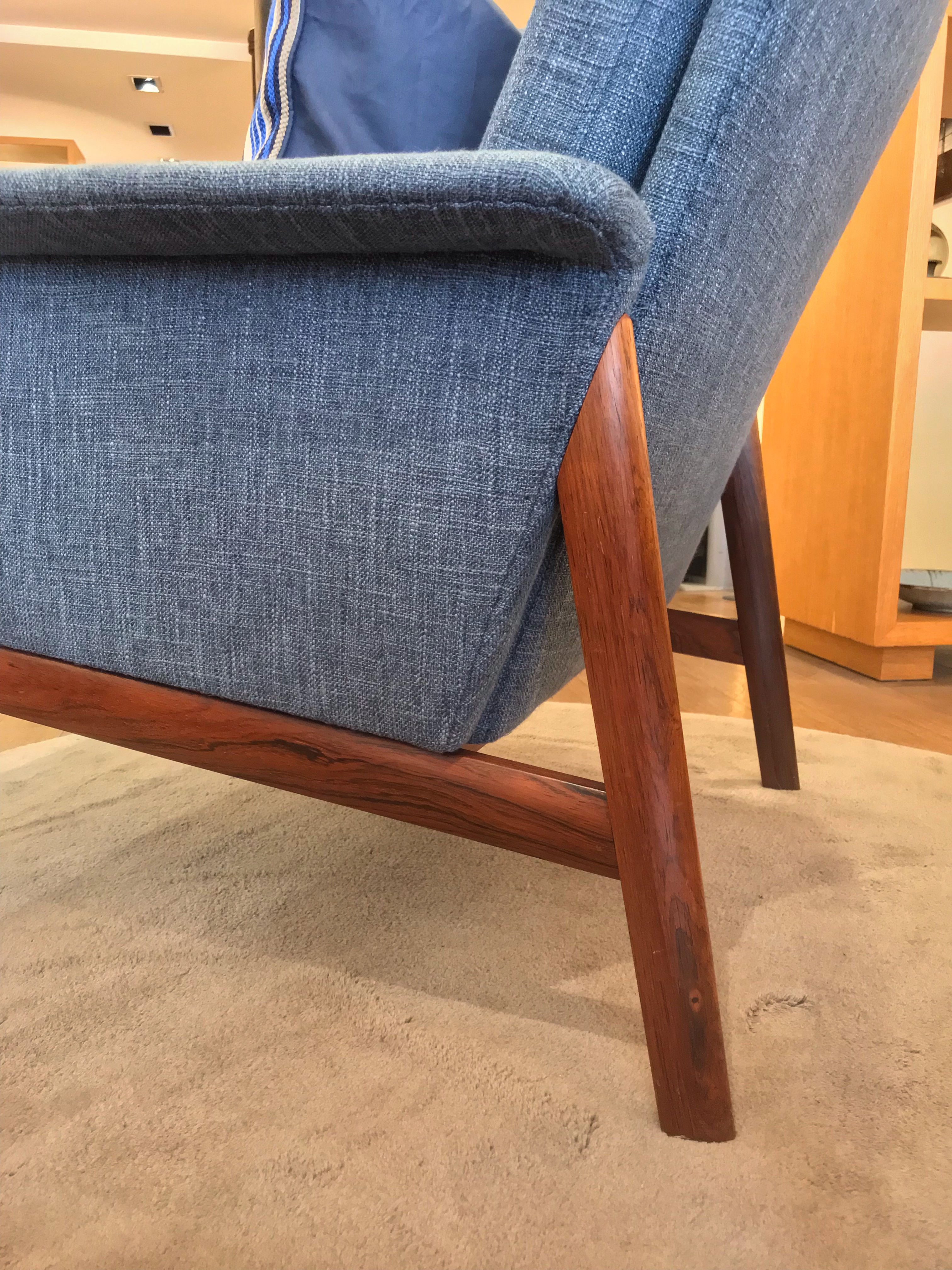 Danish reading armchair 1960/1970 by Finn Juhl on rosewood base. Published by France & Søn.